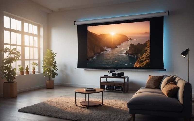 - Screen Material: High-gain materials enhance brightness, while low-gain screens prevent glare in well-lit rooms.